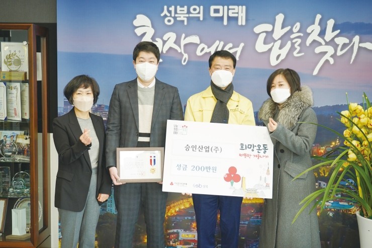 지난 2월 7일 성북구(구청장 이승로) 돈암2동에 소재한 공동주택 위생관리 전문업체 승인산업(주)에서 지역의 어려운 이웃을 위해 사용해 달라며 따뜻한 겨울나기 성금 200만 원을 전달했다. 이날 진행된 기부금 전달식은 이승로 성북구청장과 관계 공무원...
