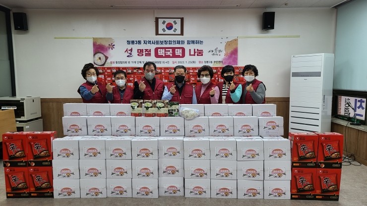 성북구 정릉3동(동장 박해열) 지역사회보장협의체(위원장 김정자)는 지난 1월 설을 앞두고 관내 저소득 독거 어르신 130가구에 떡국 떡과 사골곰탕, 김자반으로 이루어진 떡국 꾸러미와 라면 1박스를 제공했다. 이번 떡국 떡 나눔 사업은 코로나19 거리두기와...