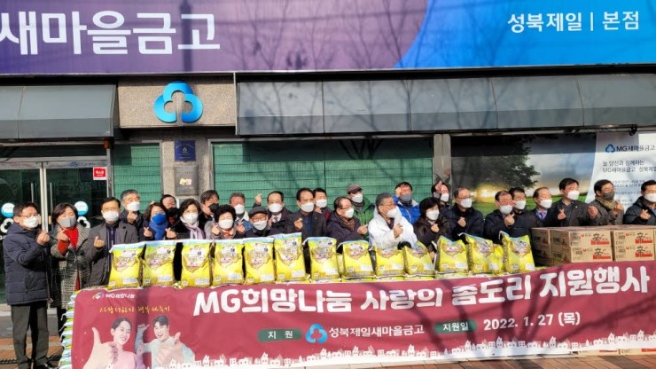 성북제일새마을금고(이사장 황하연)에서 지난달 27일 어려운 이웃을 돕기 위해 새마을금고 사회공헌 사업인 ‘MG희망나눔 사랑의 좀도리 운동’ 나눔 행사를 진행했다. 금고는 ‘MG희망나눔 사랑의 좀도리 운동’을 통하여 모금된 후원물품 백미 10kg 160포와...