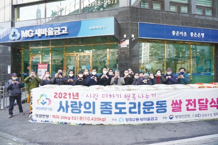 지난 18일 성북구 장위2동 새마을금고(이사장 한종열)에서 설 명절을 앞두고 금고 임직원 및 지역주민 등이 참석한 가운데 어려운 이웃의 따뜻한 겨울나기를 위한 좀도리 쌀 나눔 행사를 개최했다. 사랑의 좀도리 운동은 지난 1997년 IMF 외환위기를 겪으면...