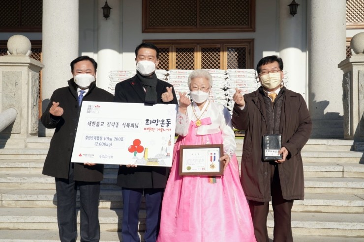 대한불교 진각종 신도 석복희 씨가 성북구(구청장 이승로)에 어려운 이웃의 따뜻한 겨울나기를 기원하며 철원오대햅쌀 2,000kg을 전했다. 석 씨는 지난 해에도 백미 60포를 기부하는 등 지역사회를 위한 따뜻한 나눔을 지속적으로 실천하고 있다. 석 씨는 “...