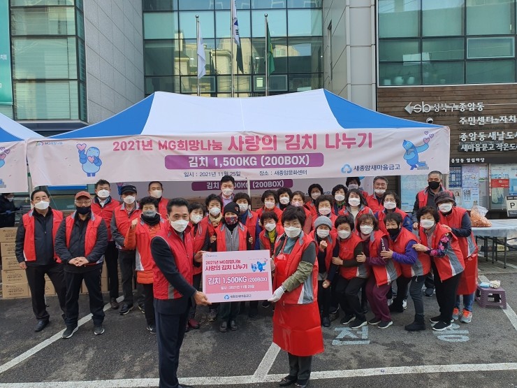 경제적, 신체적 어려움으로 인해 김장을 하지 못하는 저소득 이웃들을 위해 성북구(구청장) 종암동에 위치한 새종암 새마을금고(이사장 김성희) 20여명의 임원들이 동주민센터에 모여 김장김치를 담갔다. 지난 11월 25일 오전 7시 절인 배추를 내려놓는 것을 시작으...