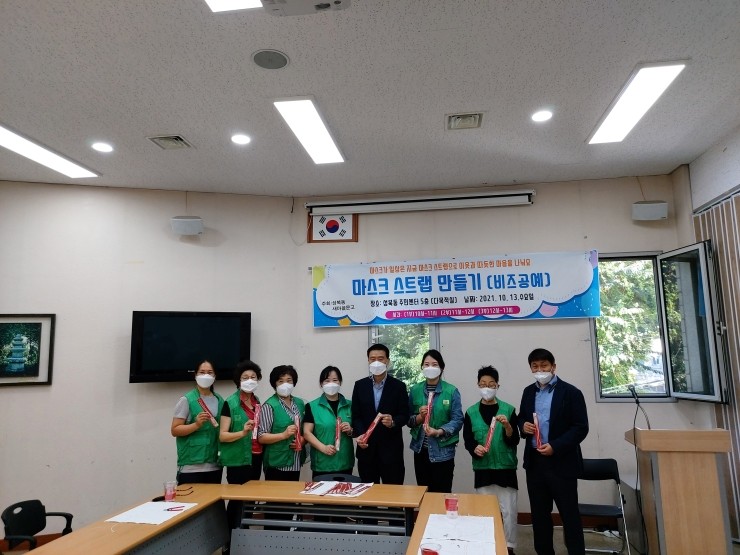 2021년 10월 13일(수) 성북구(구청장 이승로) 성북동주민센터에서「홀몸 어르신을 위한 마스크 스트랩 만들기」행사가 개최되었다. 새마을문고 성북동지회(회장 박기순)가 주최하고 성북동지회 회원들의 자발적인 참여로 진행된 이번 행사는, 이날 만든 마스크 ...