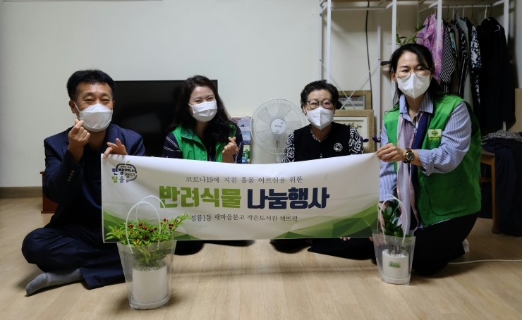 성북구 정릉1동 새마을문고(회장 하현희)에서는 10월 6일 코로나19로 지친 홀몸 어르신 정서지원을 위해 반려식물 화분을 만들어 홀몸 어르신 20세대에게 전달했다. 이번 반려식물 나눔은 코로나19로 제한된 일상을 보내고 있는 홀몸 어르신이 식물을 가꾸며 ...