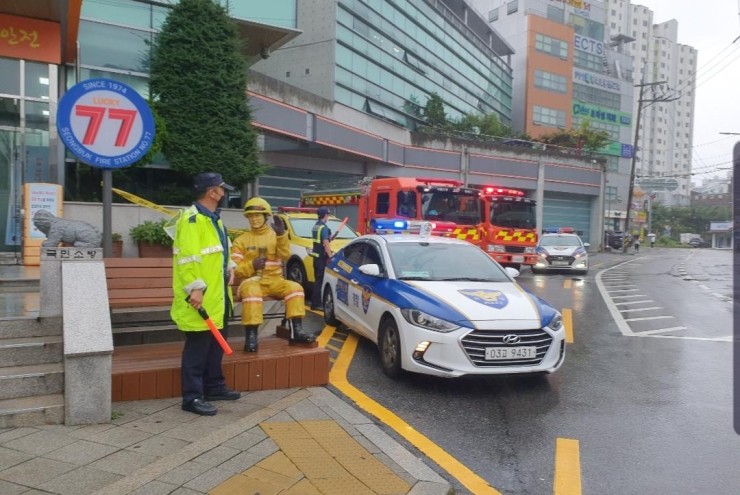 종암경찰서(서장 이양호)는 지난 6일(수) 10:30 성북구 종암로 145, GS칼텍스 주유소 앞에서 성북소방서(재난관리과) 지원을 받아 경찰ㆍ소방 화재대피 합동훈련을 실시했다. 화재 발생 시 최초 상황전파, 소방출동로 확보, 현장주변 2차 통제선(P/L...