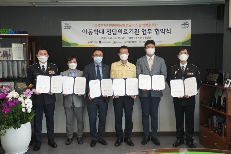 학대피해아동의 의료적 지원을 위해 서울 성북구(구청장 이승로)·고려대학교 안암병원(병원장 박종훈)·성북우리아이들병원(병원장 김민상)이 손을 잡았다. 세 기관은 아동학대 근절을 위해 25일 성북구청에 모여 업무협약을 했다. 이 자리에는 서울성북경찰서, 서울...