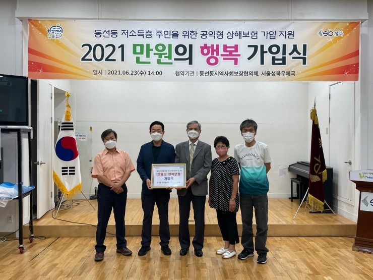 동선동 지역사회지역사회보장협의체는 서울성북우체국과 손을 잡고 관내 어려운 이웃에게 우체국 공익형 상해보험인 ‘만원의 행복보험’ 가입을 지원하기로 결정하고, 지난 6월 23일 오후 동선동주민센터에서 가입식을 개최하였다. ‘만원의 행복보험’은 미래위험 보장 ...