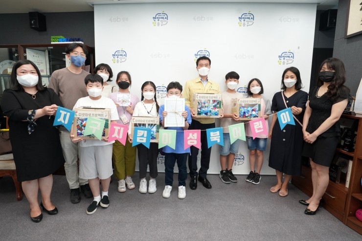 성북구 어린이들이 환경보호를 위해 쓴 편지를 이승로 성북구청장에게 전했다. 지난 17일 어린이 대표 6명과 교사 그리고 학부모는 성북구청장실을 방문해 개운초, 일신초, 숭례초 어린이가 쓴 손편지 100여 통을 전달했다. 어린이들이 손편지를 쓴 계...