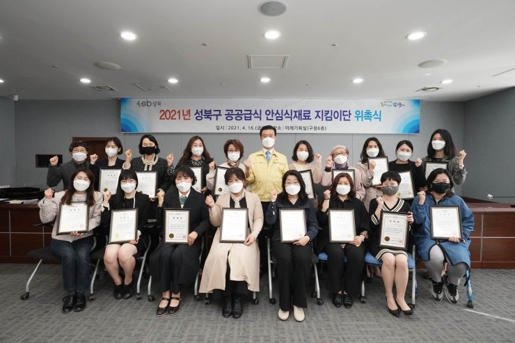 성북구(구청장 이승로)가 지난 16일 구청 6층 미래기획실에서 “2021년 성북구 공공급식 안심식재료 지킴이단”을 위촉하고 공공급식 식재료 생산·유통단계의 안전관리 및 위생 점검을 본격적으로 실시한다. 공공급식 안심식재료 지킴이단(이하 지킴이단...