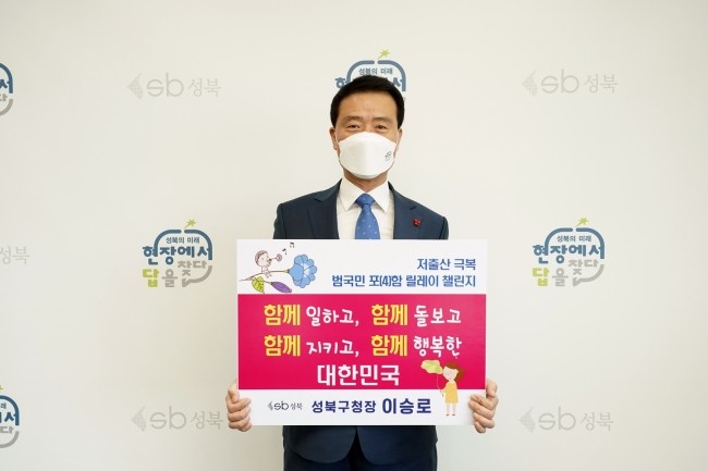 이승로 성북구청장이 지난 6일 참여형 캠페인 ‘저출산 극복 범국민 포(4)함 릴레이 챌린지’에 참여하였다. ‘저출산 극복 범국민 포(4)함 릴레이 챌린지’는 저출산이 가져올 국가 위기를 연대와 협력을 통해 극복하고자 ‘함께 일하고, 함께 돌보고, 함께 ...