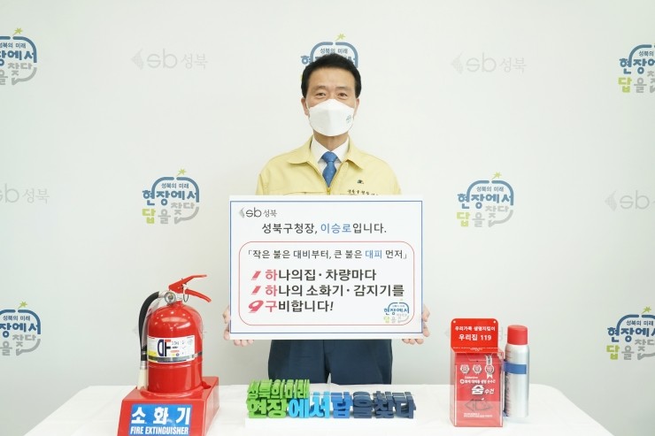 이승로 성북구청장이 지난 2일, 화재로 인한 인명 피해를 줄이기 위해 각 가정에 주택용 소방시설 설치를 권장하는 '119 릴레이 챌린지'에 동참했다. ‘119 릴레이 챌린지’는 1가구 1소화기·화재감지기 설치를 구(9)비하도록 독려하기 위해 시행된 SNS...