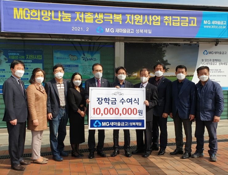 성북구(구청장 이승로) 길음1동 성북제일새마을금고가 올해도 어김없이 어렵고 소외된 저소득 가정의 학생에게 장학금을 지원했다. 장학금 수여식이 열린 19일 새마을금고 2층 이사장실에서는 새마을금고 및 동 주민센터 직원 등 최소 인원이 모였다. 기념촬영 후 ...
