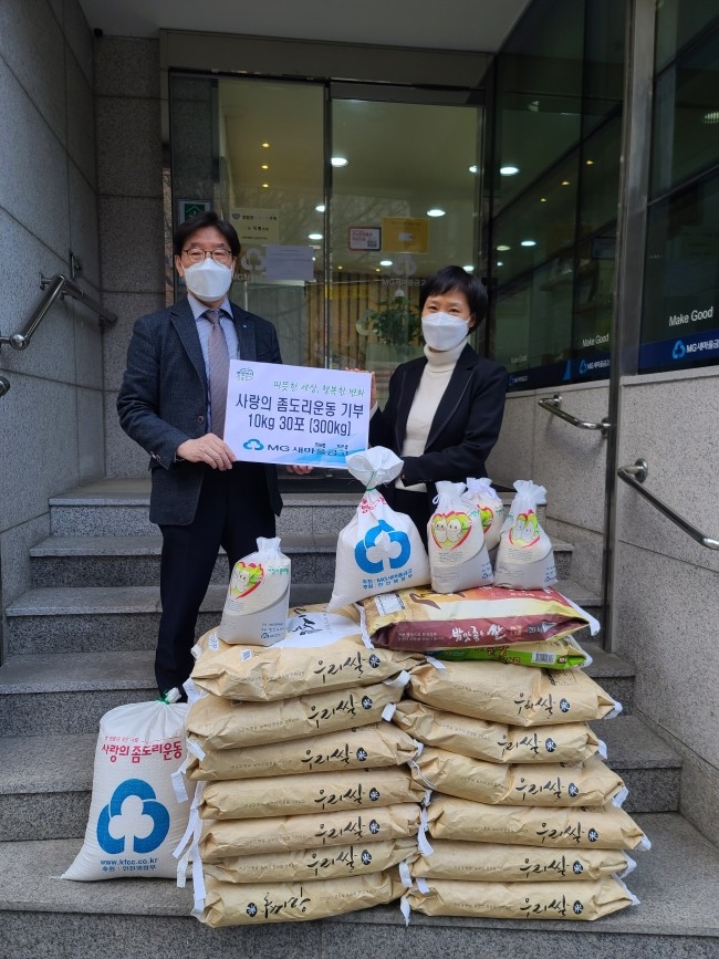 성북구(구청장 이승로)돈암2동 MG 북악 새마을금고(이사장 송인섭)에서는 24일 MG 북악 새마을금고 앞에서 어려운 이웃을 돕기 위한 사랑의 좀도리 쌀10kg 30포를 돈암2동 주민센터(동장 권순자)에 기증하는 나눔 행사를 개최했다. 사랑의 좀도리 운동...