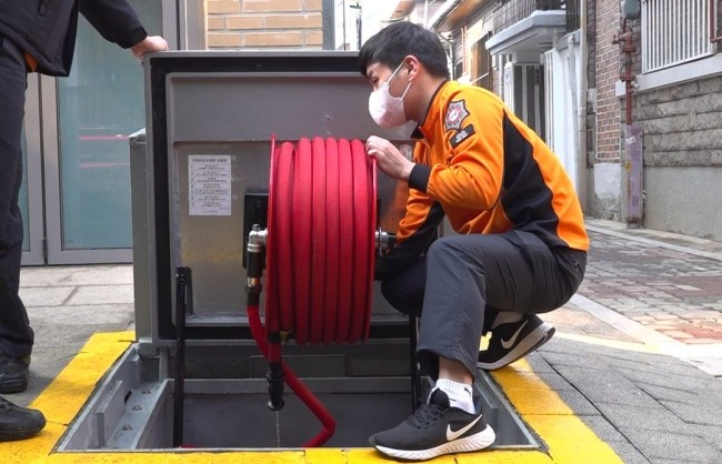 성북소방서(서장 김윤섭)는 지난달 22일 오후 성북구 돌곶이시장 내 바닥에 매설하는 비상소화장치를 설치해 시장 상인을 대상으로 사용법 교육하고 홍보 영상을 촬영했다. 소방서는 수도권 방역지침에 따라 다수의 인원을 대상으로 교육이 어려워 별도의 사용법 영상...