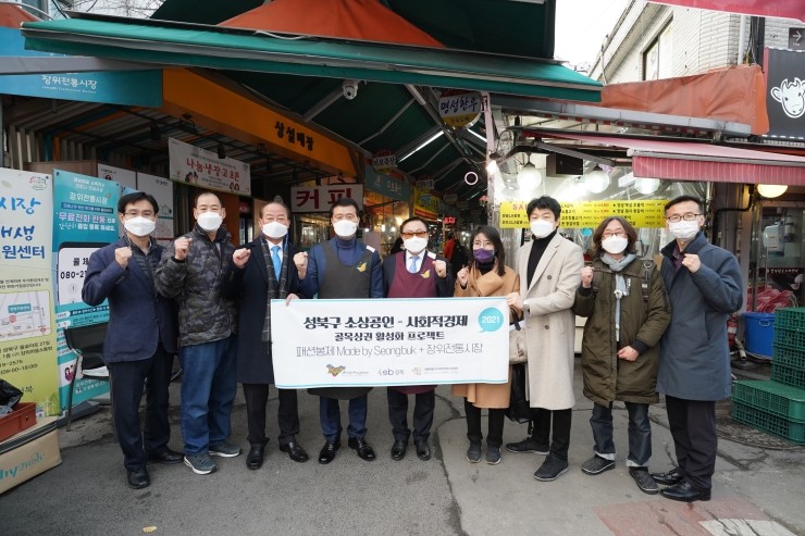 성북구(구청장 이승로)는 코로나19 재확산 추세로 장위전통시장 평소 매출이 90% 급감하는 등 위기를 겪자, 사회적기업과 봉제소공인 협업체를 구성하여 장위전통시장 상인을 위한 유니폼을 제작하고 배부했다. 성북구 소상공인 –사회적경제 골목상권 활성화 ...