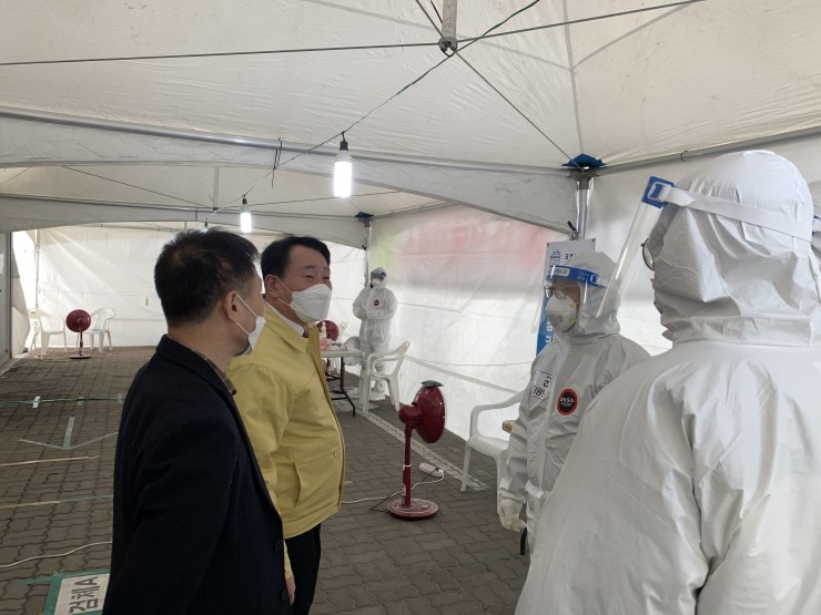 성북구도시관리공단 박근종 이사장은 지난 14일 성북구 민방위 훈련장 내 임시선별진료소를 방문해 공단 직원, 의료진, 제220보병연대 근무자들을 격려했다. 성북구도시관리공단은 작년 12월 21일부터 평일 18명, 주말 12명씩 격일제로 임시선별진...
