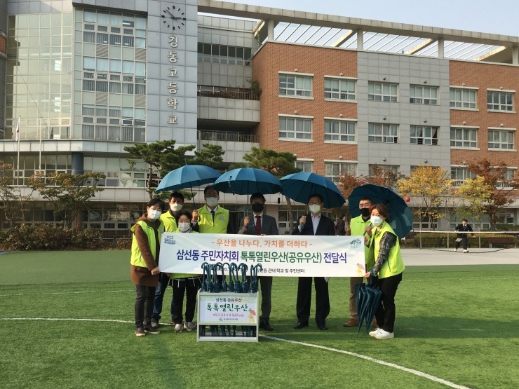 성북구(구청장 이승로) 삼선동은 지난 10월 27일 공유경제 실천의 일환으로 관내 학교 및 주민센터에 공유우산을 전달하였다. 이번 행사는 삼선동 주민자치회 마을지킴분과에서 우리동네 공유문화 확산을 위해 진행하었으며 공유우산을 필요로 하는 경동고등학교...