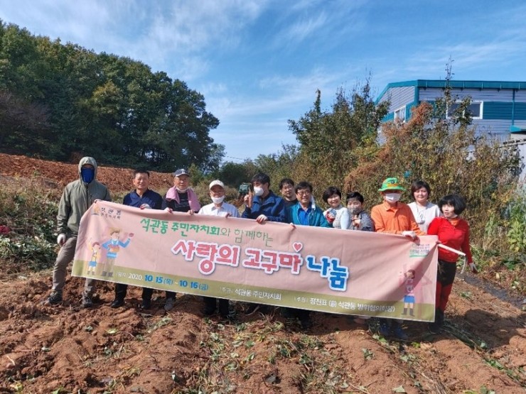 성북구(구청장 이승로) 석관동주민센터(동장 이대현)에 지난 15일 주민자치회 위원과 통장, 직원 등 20여 명이 모여 사랑의 고구마 나눔 행사가 열렸다. 석관동 주민(정진표)으로부터 기부 받은 김포시 대곶면 일원 100여 평 밭에 심은 고구마 200...