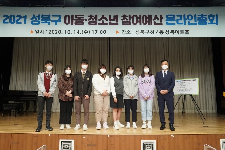 성북구(구청장 이승로)가 지난 14일 성북구청 4층 성북아트홀에서 ‘2021년도 아동·청소년 참여예산 선정을 위한 온라인총회’를 개최했다. 이번 제21대 국회의원 선거부터 투표권 연령이 만 18세로 낮아지는 등 청소년들의 참정권이 확대되고, 청소년들...