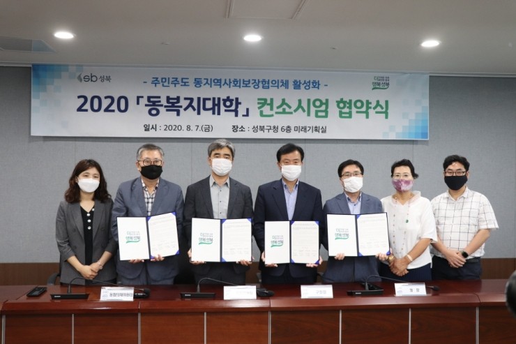 성북구(구청장 이승로)가 동 지역사회보장협의체 활성화 추진을 위한 ‘동복지대학 컨소시엄 협약식’을 개최했다. 협약식은 7일 성북구청 미래기획실에서 진행되었으며 돈암1동, 보문동, 정릉3동 주민센터와 동지역사회보장협의체, 지원복지관으로 길음종합사회복지관, ...