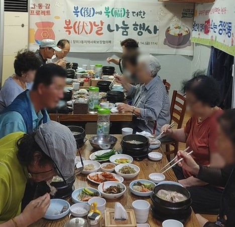 성북구(구청장 이승로) 장위3동 지역사회보장협의체와 ‘나눔 이웃’이 광복절과 말복을 앞두고 지난 14일, 긴 장마로 지친 지역 내 저소득 홀몸어르신들께 삼계탕과 복지용품선물꾸러미를 전달하는 “당신이 있어 THE 빛나는 장위3동, 복(復)에 복(福)을 더한 복...