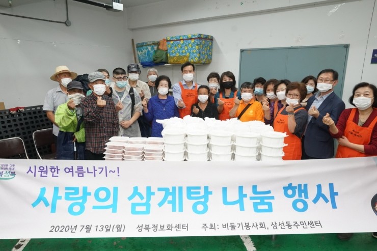 성북구(구청장 이승로) 삼선동 나눔이웃인 비둘기봉사회(회장 장공임)는 갈수록 더워지는 여름을 대비하여 지난 13일(월) 저소득 가구 어르신을 위해 삼계탕을 만들어 각 가정으로 전달하는 행사를 진행했다. 이번 행사는 코로나-19 예방을 위해 삼계탕을 만들어...