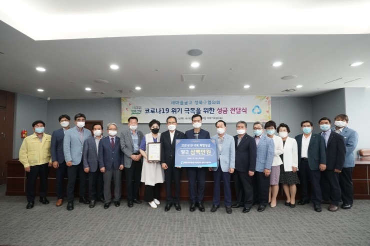 새마을금고 성북구협의회(회장 황하연)가 9일 서울특별시 성북구(구청장 이승로)에 코로나19 위기 극복을 위한 성금 300만 원을 기탁하였다. 최근 코로나 19 재확산이 우려되면서, 지역 내 어려움을 겪는 소외 이웃을 지원하고자 300만 원을 구에 발 빠르...