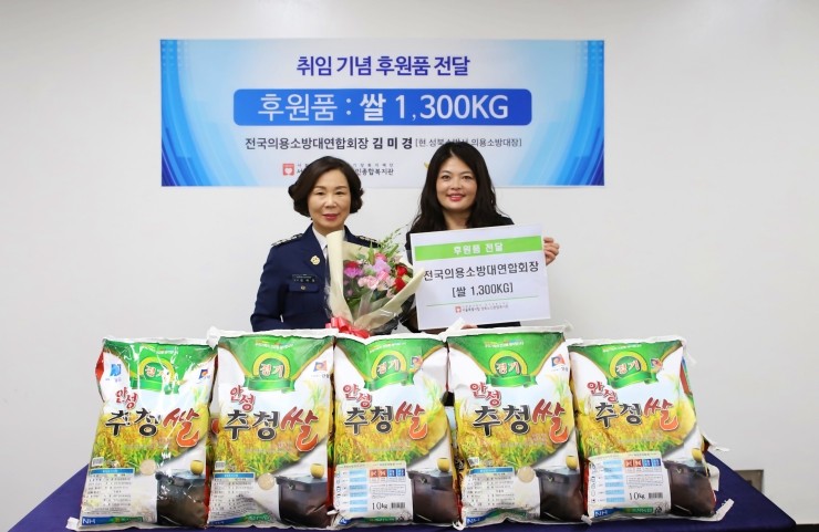 김미경 전국의용소방대연합회장(이하 연합회장)은 1일 서울 성북구 성북노인종합복지관에 사랑의 쌀 1300kg을 기부했다. 이번 사랑의 쌀 기부는 저소득층과 독거노인 등 어려운 이웃에게 전달될 계획이다. 김미경 연합회장은 “기부하는 마음에 크기는 중요하지...