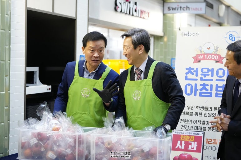 성북구, ‘천원의 아침밥’ 4년간 약 10억 원 투입 100만 식 지원 이승로 성북구청장 사업 3주년 맞아 국민대 방문 2023년 첫 도입 이후 4년간 단계적 확대 학생 1천 원 부담으로 균형 잡힌 식사 제공 성북구, ‘천원의 아침밥’ 성북구(구청장 이...