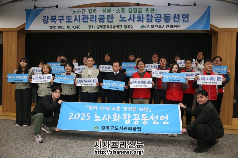 강북구도시관리공단 ‘노사화합공동 선언식’ 개최 “상생·신뢰의 새 출발~” ▲강북구도시관리공단 ‘노사화합공동 선언식’ 개최 (시사프리신문=유영일 기자) 강북구도시관리공단 신임 김윤기 이사장은 지난 12월 3일 오전, 강북문화예술회관 행복실에서 ...