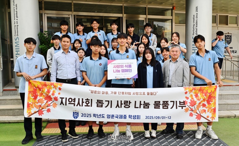 강북구 영훈국제중학교 학생회, 지역사회 돕기 사랑 나눔 기부 캠페인 직접 모은 식품·생활용품, 강북잇다푸드뱅크마켓에 전달 ▲영훈중학교 학생회가 기부 캠페인 기념촬영을 하고 있다. 강북구(구청장 이순희)는 영훈국제중학교 학생회가 주도한 따뜻한 나눔 활동이 지역사...