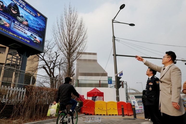 도봉구-도봉경찰서, ‘구정 홍보 전광판’ 설치 운영 구민 소통 확대 ▲오언석 도봉구청장(오른쪽)이 구정 홍보 전광판을 가리키고 있다. 도봉구(구청장 오언석)가 도봉경찰서(서장 윤창기)와 협업해 경찰서 내 ‘구정 홍보 전광판’을 설치했다. 구는 이번 전광판 설...