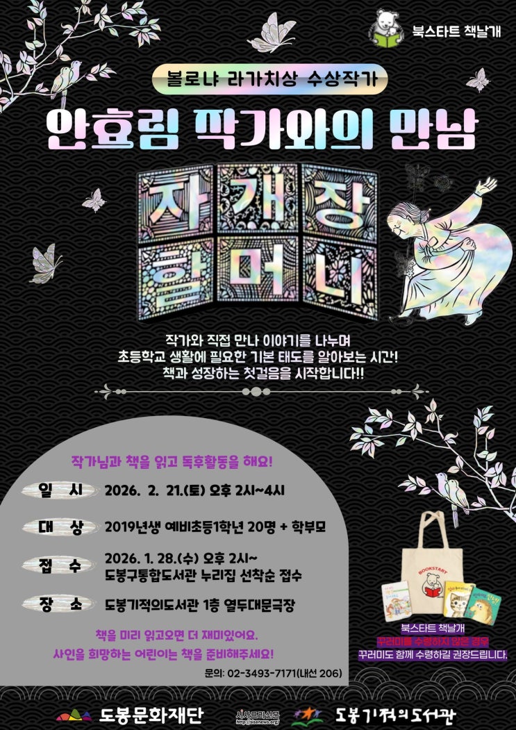 도봉기적의도서관, ‘안효림 작가와의 만남’ 강연 개최 도봉구(구청장 오언석) 도봉기적의도서관이 예비 초등학생과 예비 학부모를 대상으로 ‘안효림 작가와의 만남’ 프로그램을 운영한다. 이번 프로그램은 초등학교 입학을 앞둔 어린이들의 책에 대한 흥미를 일깨워 ...