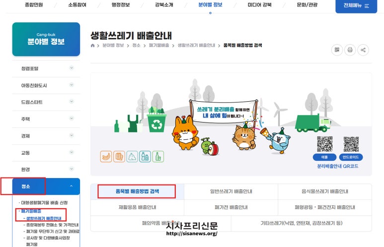 강북구, 홈페이지 내 ‘품목별 검색’ 분리배출 안내 시스템 운영 생활폐기물 배출 방법 한눈에 확인 9월 시범운영 거쳐 10월 정식 운영 강북구(구청장 이순희)는 생활폐기물의 올바른 분리배출을 돕기 위해 구청 홈페이지에 ‘청소’ 메뉴를 신설하고, 주민 맞...