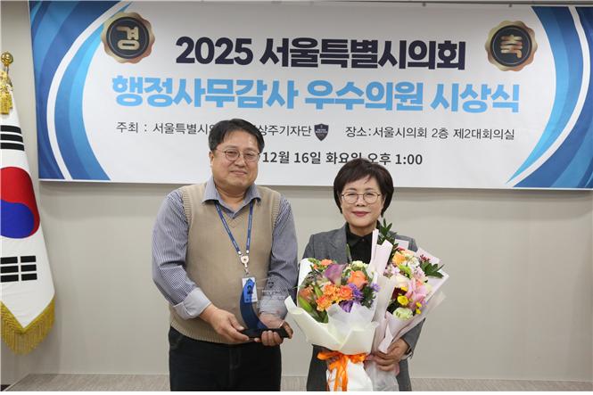 서울시의회 이경숙 의원, 2025 서울시의회 행정사무감사 우수의원 선정 서울시의회 출입상주기자단 행정사무감사 우수의원 선정돼 서울시의회 이경숙 의원, 2025 서울시의회 행정사무감사 우수의원 선정 서울시의회 이경숙 의원(국민의힘)원이 지난 12월 16일 서울시의회...