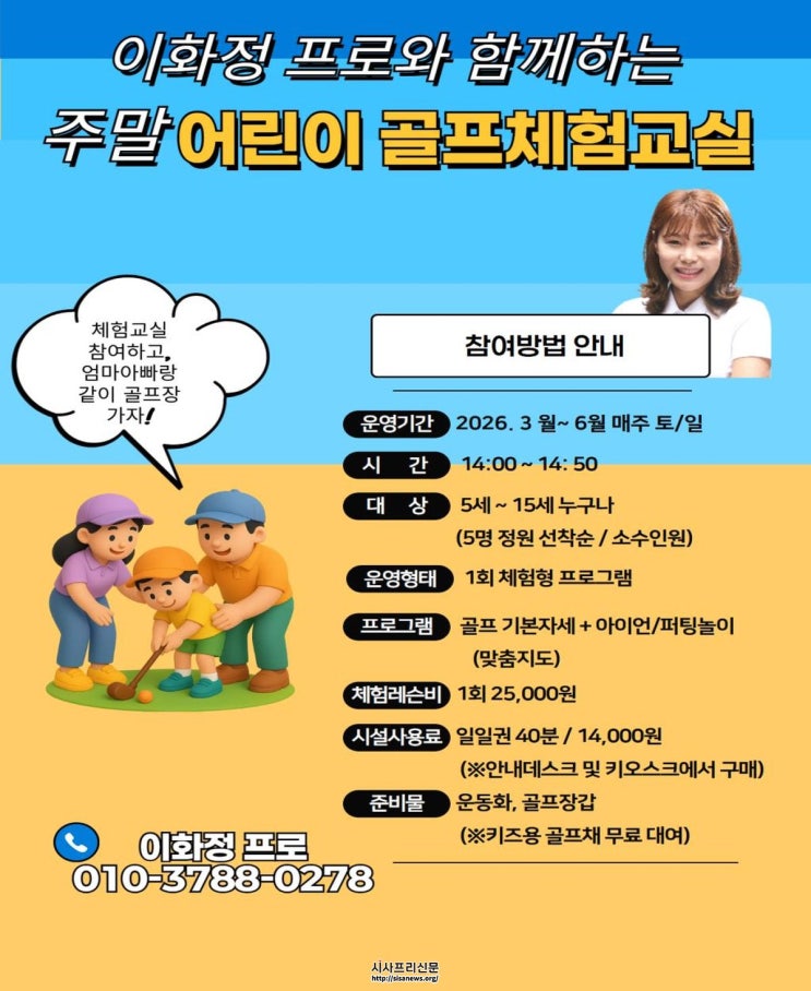 강북구, 미래 꿈나무 위한 ‘어린이 골프체험교실’ 운영 오동골프클럽 아카데미 레슨 프로와 함께하는 체험형 골프교실 강북구(구청장 이순희)는 지역 어린이들의 신체 발달을 돕고 다양한 체육활동 경험 기회를 제공하기 위해 오동골프클럽에서 ‘주말 어린이 골프체험...