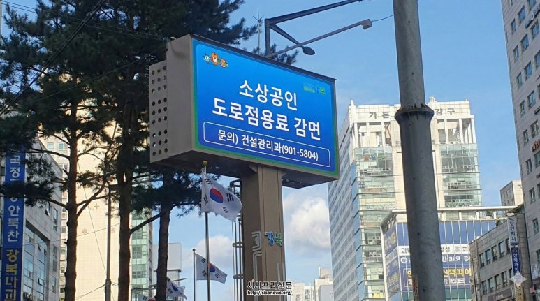 강북구, 2026년 소상공인 도로점용료 25% 감면 지속 소상공인 확인서 등 증빙 서류 제출 2026년 전자게시대 감면 송출사진 강북구(구청장 이순희)는 소상공인의 경제적 부담을 덜기 위해 2026년도 도로점용료를 25% 감면한다고 밝혔다. 코로나19로 인해 ...