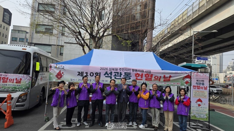 성북구 석관동, ‘헌혈의 날’ 10회 맞아 생명 나눔 실천 2021년부터 연 2회 지속 추진…지역 혈액 수급 지원 역할 헌혈증 대한적십자사 기증 예정…필요한 곳에 전달 성북구 석관동, ‘헌혈의 날’ 10회 맞아 생명 나눔 실천 성북구 석관동 주민자치회가 지...