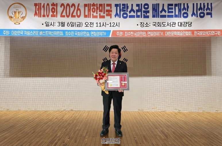 도봉구의회 안병건 의장 ‘제10회 대한민국 자랑스러운 베스트대상’ 수상 주민 중심 의정 실천과 지역발전 기여 공로 인정 도봉구의회 안병건 의장, ‘제10회 대한민국 자랑스러운 베스트대상’ 수상 (시사프리신문=유영일 기자) 도봉구의회 안병건 의장(...