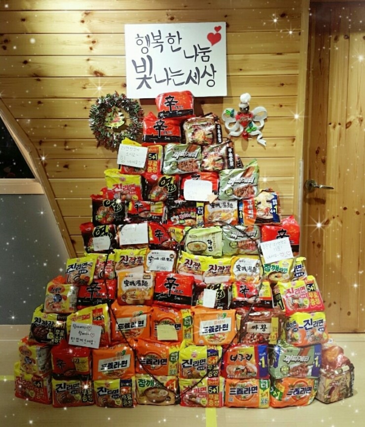▲아이들이 라면을 모아 만든 아낌없이 주는 나무