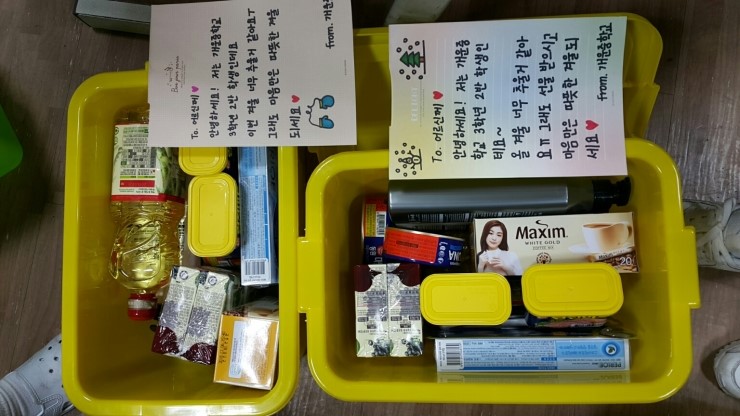 개운중 학생들은 일률단편적인 기성품 선물세트가 아니라 이웃이 실질적으로 필요로 하는 다양한 생필품과 식료품을 드리고 싶다는 의견과 더불어 비닐포장을 생략하고 실생활에서 다시 쓰일 수 있는 플라스틱 정리박스로 전달하고 싶다는 아이디어도 직접 제안했다.