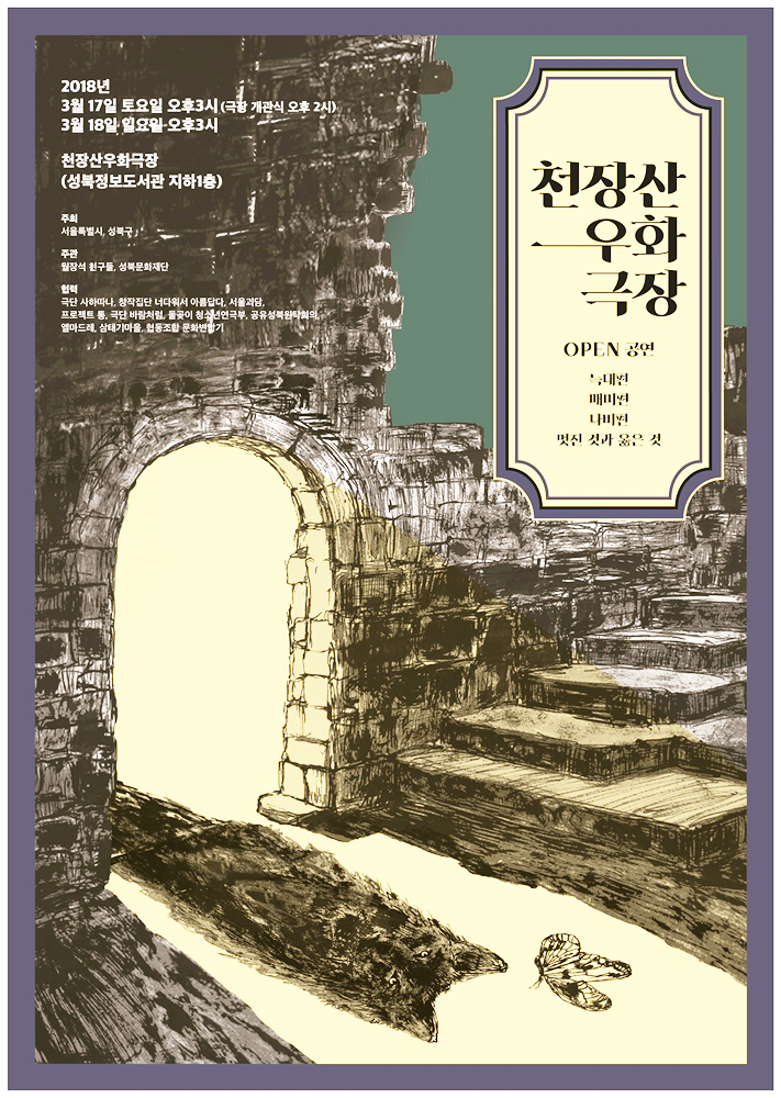 (가칭)천장산 우화 극장의 개관식과 오픈공연은 3월 17일(토) 오후 2시, 18일(일) 오후 3시에 6호선 상월곡역 인근에 위치한 성북정보도서관 지하 1층에서 펼쳐진다. 보다 자세한 내용은 월장석친구들 페이스북 http://facebook.com/woljangseokfriends에서 확인할 수 있다. (☎문의 02-6906-9248)