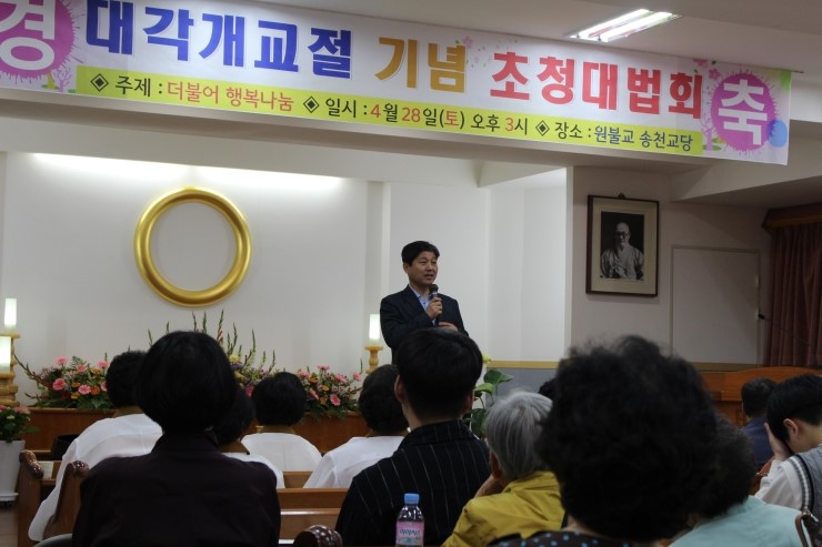 지난달 28일 원불교 송천교당에서는 대각개교절(원불교 열린날) 기념 초청대법회가 열렸다.