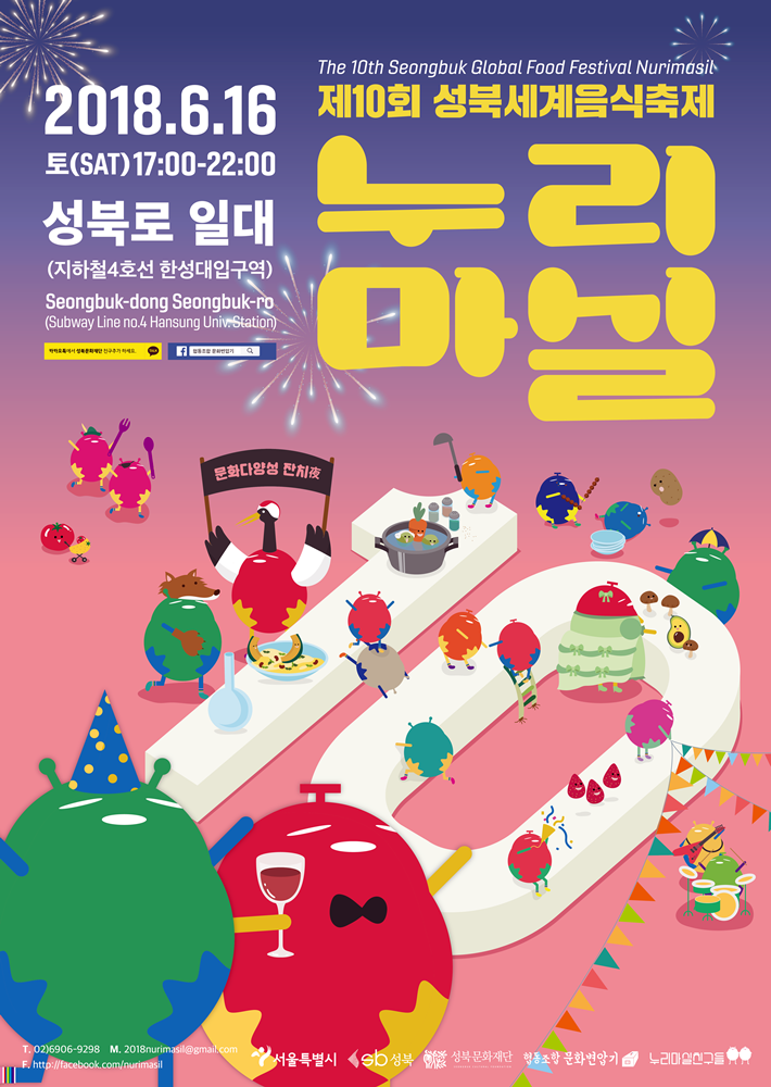성북구와 서울시가 주최하고 성북문화재단·협동조합 문화변압기·누리마실친구들이 주관하는 <제10회 성북세계음식축제 누리마실>이 6월 16일(토) 17:00~22:00까지 성북로 일대에서 열린다.