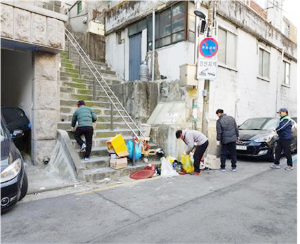 장위1동은 구릉지에 일반주택, 다세대, 다가구 밀집지역으로 청소 관련 민원이 많은 지역으로 골목길의 모퉁이에 상습적인 무단투기 장소가 많아 항상 주민들의 생활 불편을 주고 있는 지역이다.