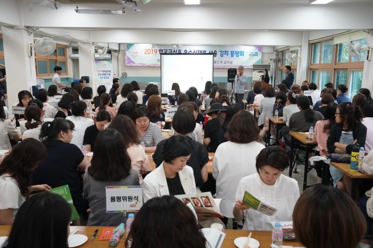 이번 품평회는 지난 5월 모집공고를 통해 접수된 우수한 김치업체 10개중 1차 서류심사, 2차 현장실사를 통과한 5개 업체(수안보농협,세광식품,서안동농협,경기농협,선도농협)의 당락을 결정하는 자리가 아닌 학교급식에 납품되는 다양한 김치의 맛을 맛보고 그 업체를 알아보는 홍보의 장으로 마련되었다.