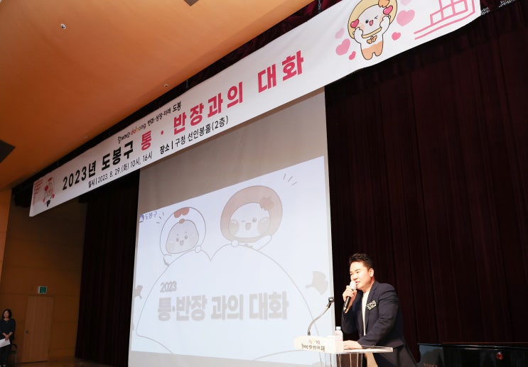 지난달 29일 도봉구(구청장 오언석)는 ‘통‧반장과의 대화’ 자리를 마련했다. 통‧반장들의 임무와 역할에 대해 설명하고, 구청장이 민선8기 구정 현안과 주요사업 진행상황 등을 공유하기 위해서였는데 이날 14개 동의 1,000여 명이 넘는 통‧반장과 주민들이 참석했다.