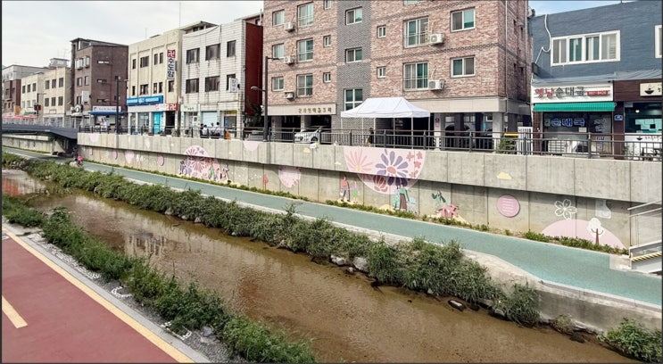 방학천(금강아미움 맞은편~방학교) 옹벽 약 360m 구간이 걷고 싶고 머무르고 싶은 산책길로 탈바꿈했다.