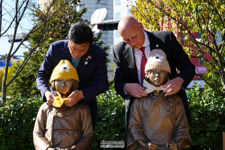 이승로 성북구청장과 아라 나자리안 글렌데일시장은 이날 다소 쌀쌀한 날씨 속에서 평화의 소녀상이 추위에 떨지 않도록 털모자와 목도리를 직접 둘러주며, 양 도시의 우정을 상징하는 의미 있는 순간을 연출했다.