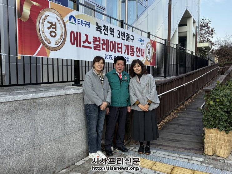 (시사프리신문=유영일 기자) 도봉구의회 안병건 의장(창1·4·5동)은 지난 11월 25일 녹천역 3번 출구 에스컬레이터 준공 현장을 방문해 설치 완료 상태와 운영 준비 상황을 점검하였다. 이날 현장 점검에는 오청은 동장(창4동)이 동행해 현장 주변 보행 동선 개선 필요사항을 함께 살폈다.